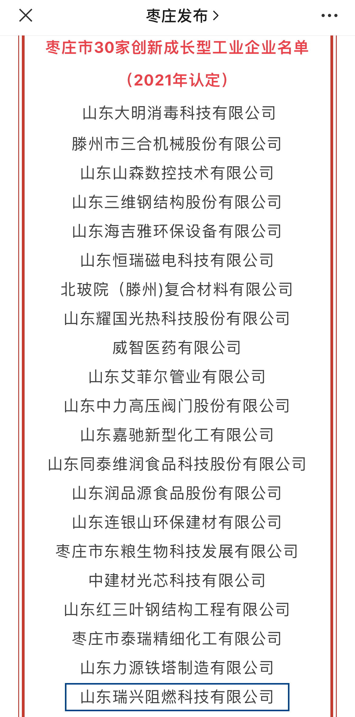 List Of 30 Innovative Growth Industrial Enterprises In Zaozhuang City